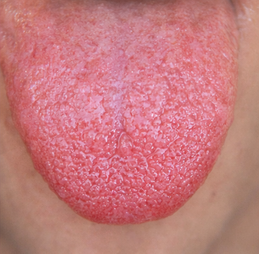 On physical examination, the patient appeared febrile and uncomfortable but was hemodynamically stable. Vital signs revealed fever and mild tachycardia. Oropharyngeal examination showed enlarged, erythematous tonsils with white exudates. The tongue appeared erythematous with prominent papillae, consistent with a strawberry tongue.