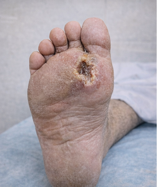 Diabetic foot ulcers are a leading cause of non-traumatic lower-limb amputations and reflect systemic disease severity rather than a localized problem alone. Peripheral neuropathy plays a central role by allowing repetitive unrecognized trauma, while infection accelerates tissue destruction and systemic complications [4].