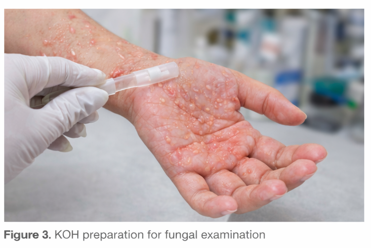 Clinically, dyshidrotic eczema is distinguished by its characteristic vesicles and distribution. However, overlap with other palmoplantar dermatoses necessitates careful evaluation. Exclusion of fungal infection is particularly important, as misdiagnosis may lead to inappropriate treatment.