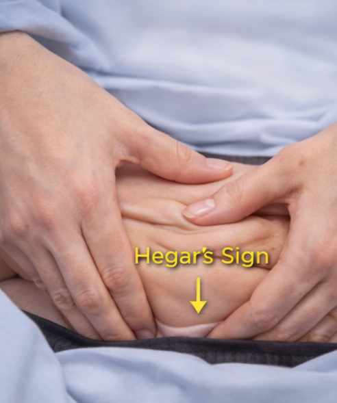 Hegar’s sign is one of the classical probable signs of pregnancy and reflects physiological softening of the lower uterine segment due to hormonal influences, particularly progesterone, and increased uterine vascularity [3]. It is typically detectable between the sixth and eighth weeks of gestation and is elicited during bimanual pelvic examination.