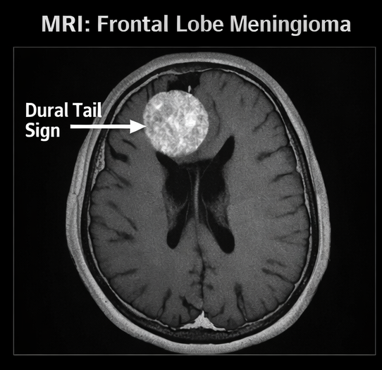Magnetic resonance imaging (MRI) plays a pivotal role in diagnosis and surgical planning due to its superior soft tissue resolution and ability to delineate tumor margins, vascular involvement, and surrounding edema. Characteristic imaging features such as homogeneous contrast enhancement and the presence of a dural tail sign can strongly suggest the diagnosis of meningioma, aiding clinicians in differentiating it from other intracranial pathologies.