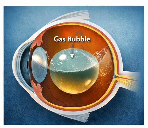 An intraocular gas bubble was injected to support retinal reattachment.