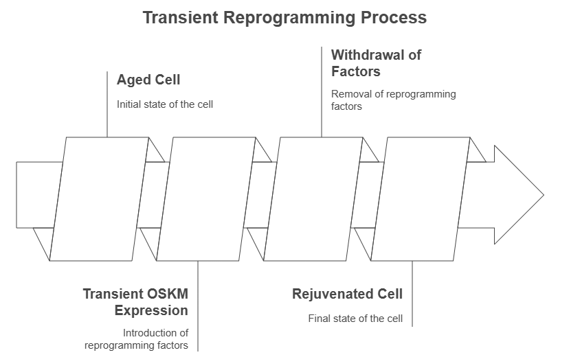 Goals: The primary goal of transient reprogramming is to revert age-associated molecular and functional hallmarks, such as the epigenetic clock and cellular senescence, thereby extending the healthy lifespan of tissues and organs.