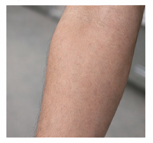 There was no history of fever, malaise, weight loss, or other systemic symptoms. The patient denied any history of immunosuppression, diabetes mellitus, long-term corticosteroid use, or chronic medical illness. There were no prior similar episodes, and no history of recent travel, animal bites, or exposure to individuals with infectious skin diseases. Apart from the progressively increasing cutaneous lesions, the patient reported no functional limitation of the affected limb and remained otherwise in good general health.