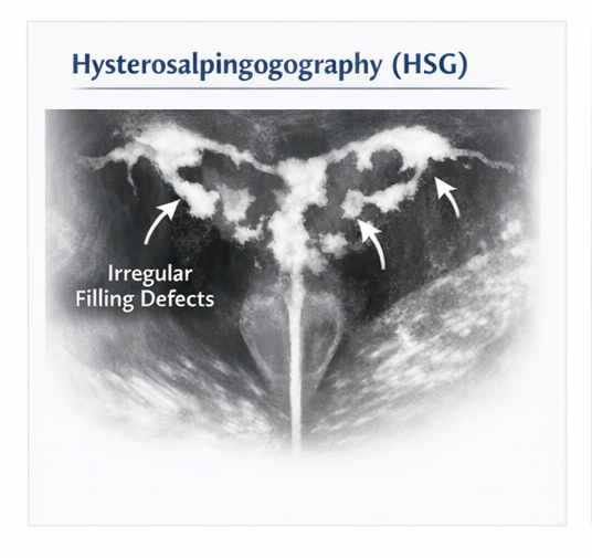 Clinically, patients may present with hypomenorrhea, amenorrhea, infertility, or recurrent pregnancy loss. In severe cases, cyclic pelvic pain may occur due to outflow obstruction.