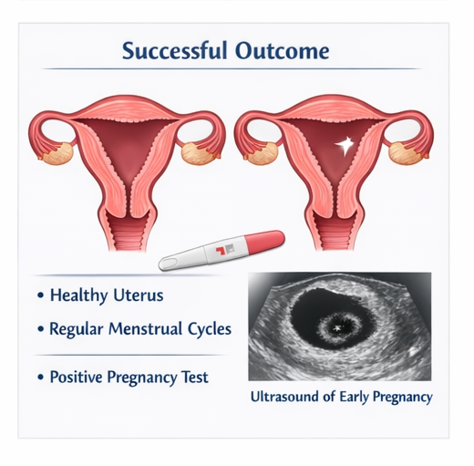 The prognosis largely depends on the extent of endometrial damage. Mild to moderate cases have good reproductive outcomes, while severe adhesions may result in persistent infertility.