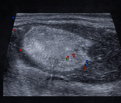 Ultrasound examination of the swelling revealed a well-circumscribed, homogenous, hyperechoic lesion located in the subcutaneous tissue. The lesion showed no internal calcification or cystic components and minimal internal vascularity on Doppler evaluation, favoring a benign fatty lesion.