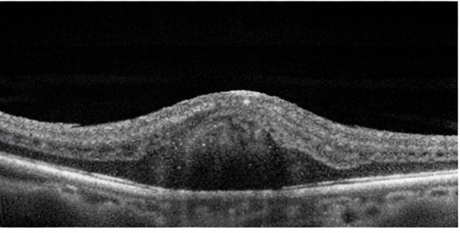 A middle-aged patient presented to the ophthalmology clinic with complaints of gradual, painless blurring of vision in one eye over several weeks. There was no history of ocular trauma, redness, pain, or prior ocular surgery. The patient had no known systemic illnesses and denied any history suggestive of vascular syndromes.