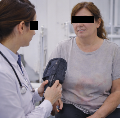 On physical examination, the patient appeared overweight with a body mass index of 31 kg/m². She exhibited classical cushingoid features, including moon facies, supraclavicular fat pads, and truncal obesity with relatively thin extremities. Blood pressure was elevated at 156/98 mmHg despite antihypertensive therapy.