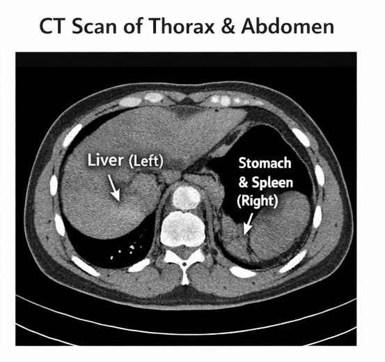 Situs inversus totalis is a rare congenital condition characterized by complete mirror-image transposition of thoracic and abdominal organs. The condition results from abnormal embryological rotation of the viscera during early development and has an estimated incidence of approximately 1 in 10,000 individuals. Most patients remain asymptomatic and are often diagnosed incidentally during imaging performed for unrelated conditions. However, recognition of this anatomical variation is clinically important because it may alter physical examination findings, diagnostic interpretation, and surgical planning. Associated anomalies such as congenital heart disease or primary ciliary dyskinesia may occur in a subset of patients. Diagnosis is typically confirmed through imaging modalities including chest radiography, ultrasonography, computed tomography (CT), and echocardiography. This case report describes a young adult male with incidentally detected situs inversus totalis during evaluation for abdominal pain, highlighting clinical findings, diagnostic workup, and clinical implications.
