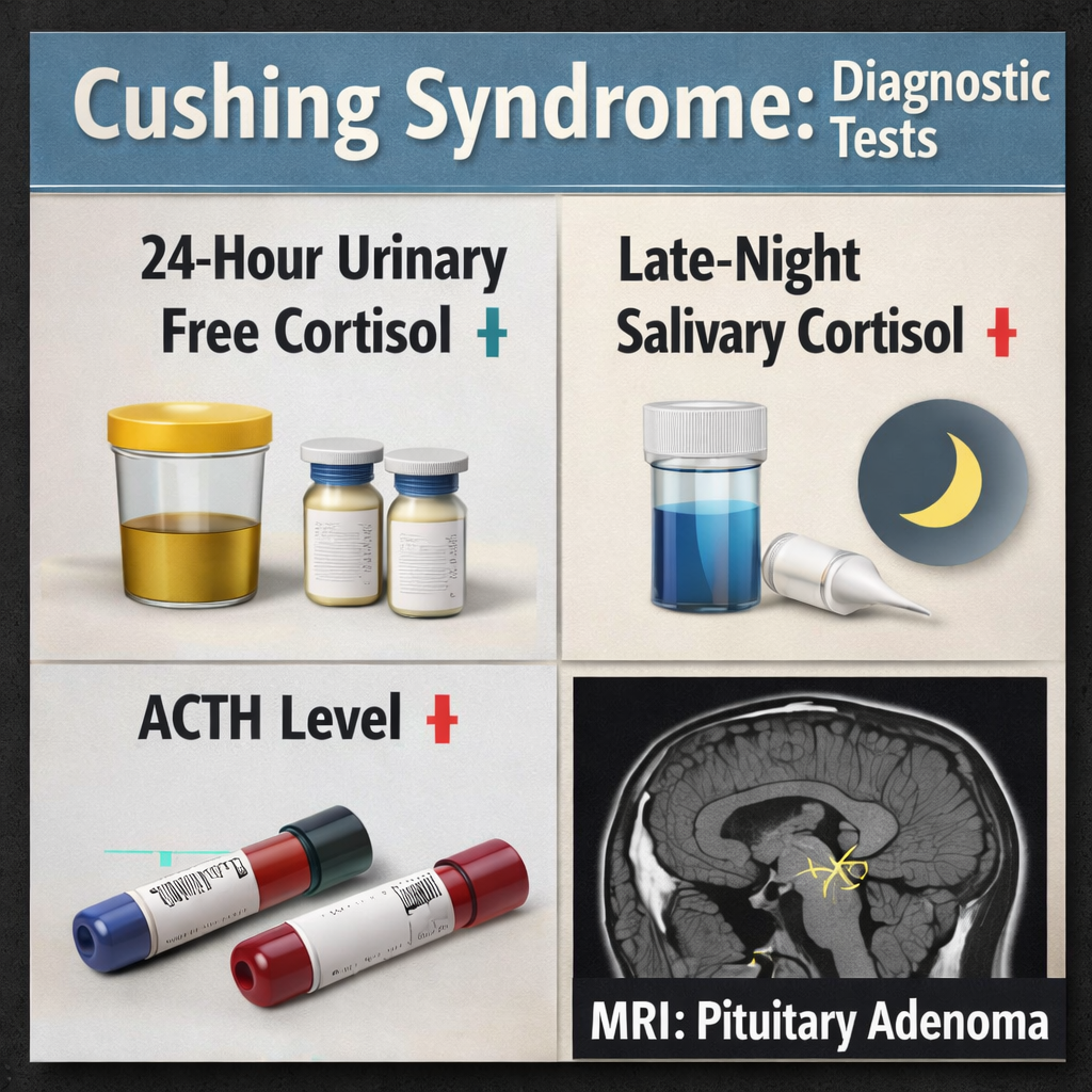 These findings confirmed a diagnosis of Cushing disease (pituitary adenoma).