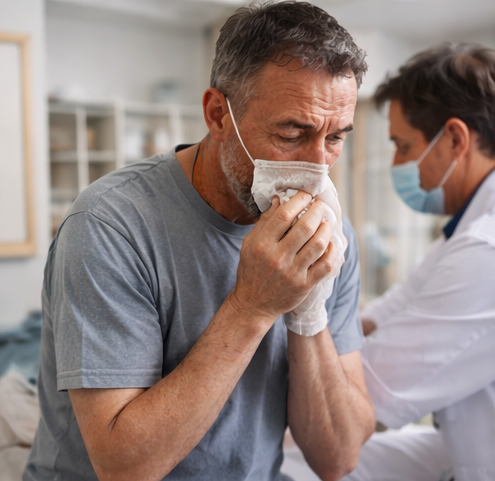 A 45-year-old male presented to the outpatient respiratory clinic with complaints of persistent cough for six weeks, intermittent low-grade fever, night sweats, and unintentional weight loss of approximately 6 kilograms over two months. The cough was initially dry but had become productive with scant mucoid sputum. There was no history of hemoptysis at presentation.